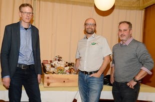 WWO Präsident Päuli Kohler (mitte, Grabs) und Rolf Pfeiffer (rechts, Buchs) verabschieden Andreas Müller nach 12 Jahren WWO.